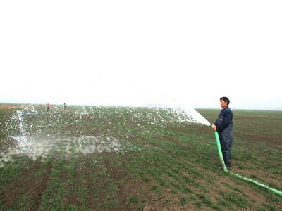 去年12月,农场采取了漫灌和喷灌相结合的方式,对全场3万小麦科学组织开展了冬灌工作,目前,全场绝大多数小麦一片葱郁、长势良好。由于农场西部边陲的一分场相对地势较高,水利条件相对薄弱,漫灌小麦的条件不足,致使4000余亩小麦未能彻底“解渴”,持续发展的旱情再次威胁着一分场的小麦生长。针对持续发展的旱情,该场农业部门再次动员部署小麦冬灌工作。春节假期以来,有关干部主动放弃休息时间,与一场职工一道再度迅速掀起了小麦冬灌热潮。一方面,有关干部组深入农户家中大力宣传抗旱的重要性和迫切性,组织职工全面落实小麦冬灌技术措施,并深入田间指导协调冬灌工作;另一方面,一分场职工不等不靠,克服资金紧张等不利条件,利用现有的机井、小口井等水源条件,科学有序地开展小麦冬灌。同时,一分场还因时制宜,引导职工对弱苗田块采取“肥水齐下”的农技措施,为全面实现小麦高产攻关目标打下坚实基础。