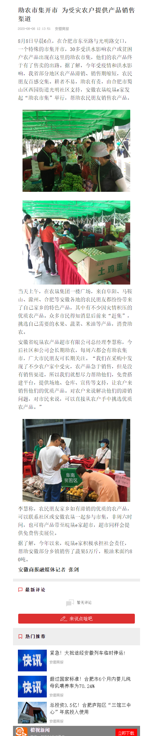 安徽商报:助农集市开市 为受灾农户提供产品销售渠道